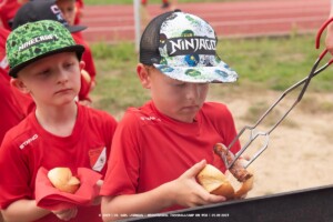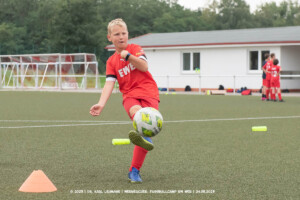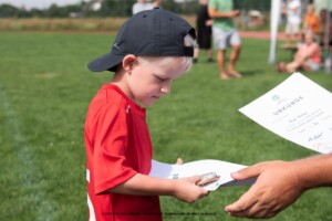 Wir freuen uns mitteilen zu können, dass wir auch in diesem Jahr unser Fußballcamp zum fünften Mal in Folge auf unserem Vereinsgelände erfolgreich durchführen konnten. Das erste Jubiläum wurde damit erreicht! Mit unglaublichen 102 Kids, 9 Trainern und drei weiteren Helfern war wieder viel los auf unserer Sportanlage. Durch das optimale Wetter und der sehr guten Vorbereitung der Trainer konnten die Übungen in den einzelnen Gruppen unter perfekten Bedingungen umgesetzt werden. Dadurch war die ganze Woche über die Stimmung in den Teams super. Es wurde wieder viel gelacht, gespielt und viel Einsatz gezeigt. Erstmalig zum Jubiläum wurde dieses Jahr zusätzlich das DFB-Fußballabzeichen für die kleinen und größeren Kids angeboten. Es mussten verschiedene Übungen (z.B. Torschuss, Dribbeln, Passen) absolviert werden. Je nach Ergebnis gab es dann tolle Urkunden, gestaffelt von Bronze bis Gold. Am Freitag fand wieder unser bekanntes Abschlussfest mit der Siegerehrung statt. Bei schöner Musik gab es Gegrilltes und kalte Getränke, für die Kids eine große Hüpfburg. Für die tägliche Verpflegung zum Mittag kümmerte sich erneut die Gaststätte „Zum Tender“. Wie schon die Jahre zuvor, hat uns unser Edeka Grau aus Werneuchen frisches Obst und weitere Lebensmittel für die ganze Woche gesponsert. In Namen der Abteilung Fußball bedanken wir uns dafür recht herzlich! Weiterhin möchten wir uns in diesem Zusammenhang bei unseren Trainern, Helfern und Organisatoren bedanken, die die Woche über alles gegeben haben!! Vielen Dank an Marcus, BG, Björn, Chris, Hannes, Simon, Marco, Louis, Peter, Mandy, Lukas, Frank, Ralf, Wolfgang und Brian. Danke auch an Karl, der die Woche über schöne Fotos gemacht hat.